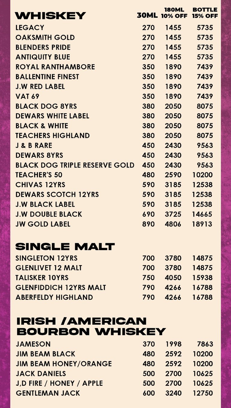 BAR MENU
